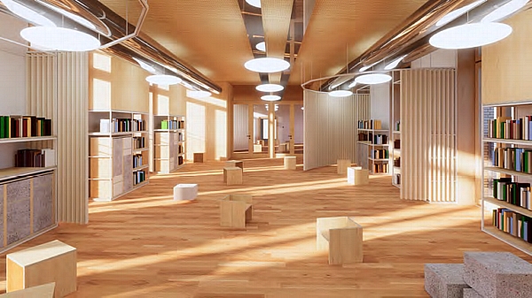 espaces partagés – bibliothèque - ci-dessus,