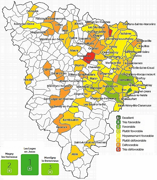 les Yvelines, la note moyenne est D, autrement dit climat moyennement