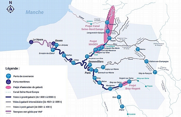km gérés par VNF entre Rouen et Nogent-sur-Seine
