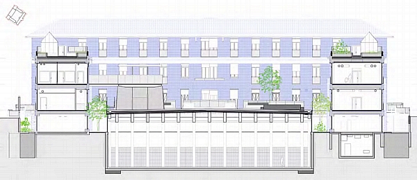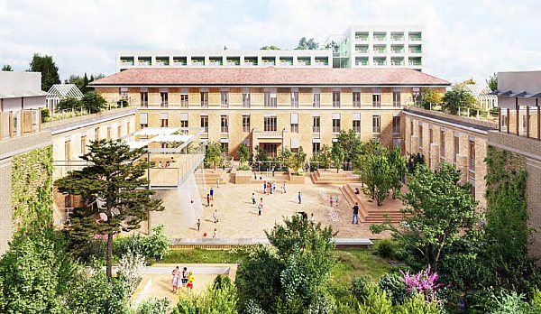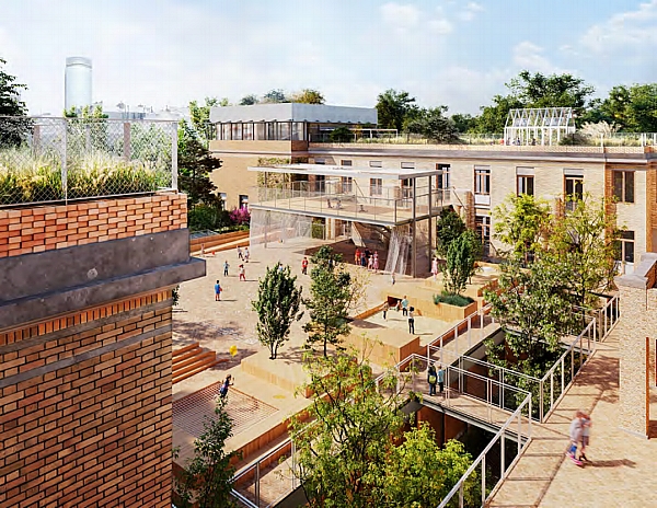 avec un jardin en toiture. Ce dernier prolonge la cour de récréation,
