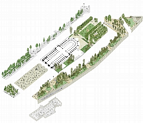 centaine d’arbres dans les fontaines et le parvis, ainsi