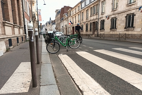 le véhicule qui traverse le trottoir. Ce dispositif renforce